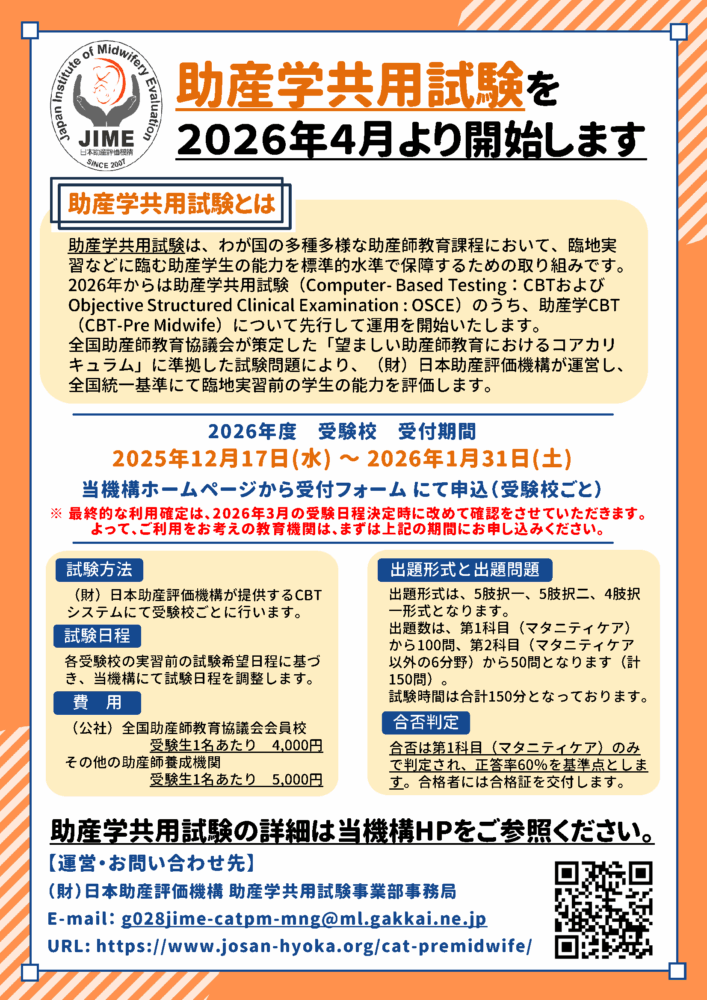 2026年度助産学共用試験(助産学CBT)利用受付開始について